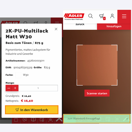 You can now scan another product or complete the purchase in the shopping cart/check-out. Alternatively, you can add more products to the shopping cart manually.