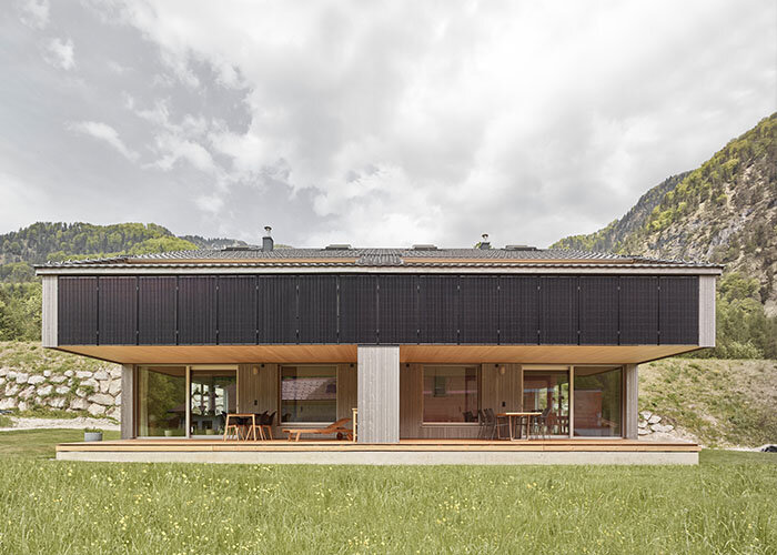 Die Herangehensweise der beiden Familien und des Architekten war von Anfang an klar: Gemeinsam bauen und durch Synergien Kosten und Ressourcen sparen! Das entspricht nicht nur den Wünschen jeder zahlenden Partei, sondern auch dem zeitgemäßen Gedanken der Nachhaltigkeit. Trotzdem sollte jede Einheit beste Wohnqualität und umfassende Privatsphäre bieten. Wortmeyer gliederte deshalb das Haus in zwei nahezu identische Hälften, die Trennung verläuft in Nord-Süd-Richtung. So hat jede Familie denselben Anteil an der großzügigen Südterrasse, am umgebenden Garten und der umlaufenden Ringstraße. Innen besitzen beide Einheiten einen großzügigen Koch-Ess-Wohnbereich im Untergeschoß und jeweils drei Zimmer, Bad und WC im ersten Stock, wobei die Kinderzimmer mit zusätzlich eingezogenen Schlafebenen und im Dach eingebetteten Privat-Terrassen begeistern. Die geschickt vorgelagerte Photovoltaik-Anlage liefert Strom für alle. Der Massivholzbau thront auf dem überkragenden Betonblock des Kellers. Auch der durch die gemeinsame Dacheindeckung perfekt integrierte Carport sitzt auf einem Betonsockel – aus Hochwasserschutz- und Holzschutz-Gründen. Letztere waren den Bauherren überhaupt ein großes Anliegen: Zum Schutz und zur einheitlichen Veredelung der vertikal montierten Fichtenholz-Fassade griffen sie deshalb zu Pullex Silverwood von ADLER. „Wir setzen diese Lasur ja mit großem Erfolg bei vielen Meiberger-Objekten ein, das Holz einfach unbehandelt zu lassen kam im Speziellen für die Bauherren-Frauen auf keinen Fall in Frage“, betont Aigner – und der wunderschöne, zeitlos elegante, silbriggraue Look des Wohnhauses gibt dem weiblichen Gespür Recht. Erreicht haben ihn Holzbau Meiberger und ADLER mit einer eigens kreierten Mischung der Farbtöne Silbergrau und Graualuminium.