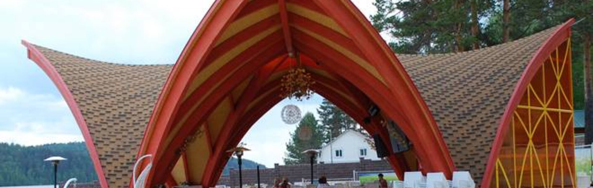 Ein buntes Schmuckstück ist der Cafépavillon des Feriendorfes „Baikal“ im russischen Irkutsk, malerisch gelegen am Ufer des Flusses Angara. Er ist in bester Holzbau-Tradition russischer Baukunst ausgeführt und jetzt innen wie außen farbenfroh geschützt mit ADLER Lignovit.