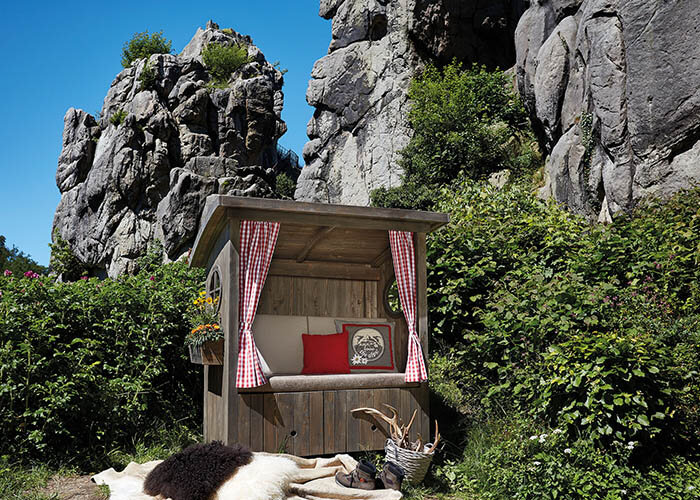 Die Inspiration für den etwas anderen Ruhepol ereilte Gerling in den Bergen. Deshalb präsentiert sich das Modell „Hüttenzauber“ mit dem Polsterset „Alpenrausch“ in urig alpenländischem Look. Aber auch am Nordsee-Strand machen die Häuschen gute Figur – dank der vier verschiedenen Stoffausstattungen lassen sich die Hütten perfekt in jede Umgebung einpassen. Gefertigt werden die Paradise-Lounges aus heimischem Fichtenholz, das mit angenehmer gebürsteter Struktur und zwei wunderbaren Beschichtungsvarianten überzeugt:
