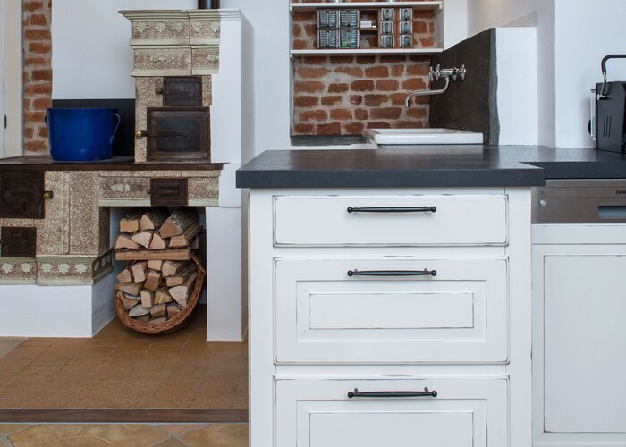 „Es ist natürlich sehr ungewohnt, eine feingeschliffene Oberfläche durch das Bürsten zu ‚zerstören‘, aber das Ergebnis spricht für sich. Neben dieser ganz speziellen Oberfläche im Used-Look war für mich das Besondere an diesem Projekt die Planung mit den vielen kleinen Details, den Vor- und Rücksprüngen und der Schrank ohne Rückwand. All das hat die Fertigung sehr aufwändig gemacht“, erzählt Martin Polleross. Aber es hat sich gelohnt. Wer jetzt diesen besonderen Raum betritt, sieht förmlich die Urgroßmutter am Herd stehen und riecht beinahe den Duft aus ihren schweren Pfannen.