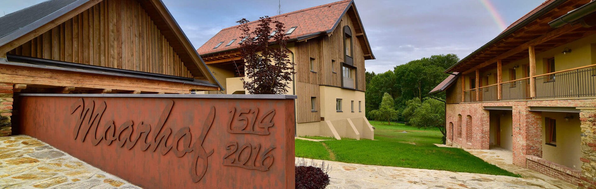 What is special about the Moarhof is that the interior and exterior spaces merge with the living and garden areas. The transitions appear fluid and everyone who visits the complex immediately feels a sense of security and wants to stay here for ever. “Having a sense of well-being takes priority for us,” says Sylvia Perner. Above all, the materials used invoke this feeling of cosiness. The old, existing building materials have been reused and combined with new ones. In doing so, Helmut Perner took great care to only use natural building materials such as brick, wood, stone, limestone, iron and mineral wool. The 250-year old solid oak wood doors with hand-machined wrought iron fittings catch the eye of every onlooker. They originate from a castle estate and round off the overall appearance.