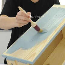 Sand the dry surfaces once more with sand paper 240 in direction of the wood grain. Doing this intermediate grinding you can eliminate eventually existings unevenness or varnish runs. Remove dust thoroughly and coat the piece of furniture in the same way you did first. After a drying time of five or six hours your “new” commode is ready.