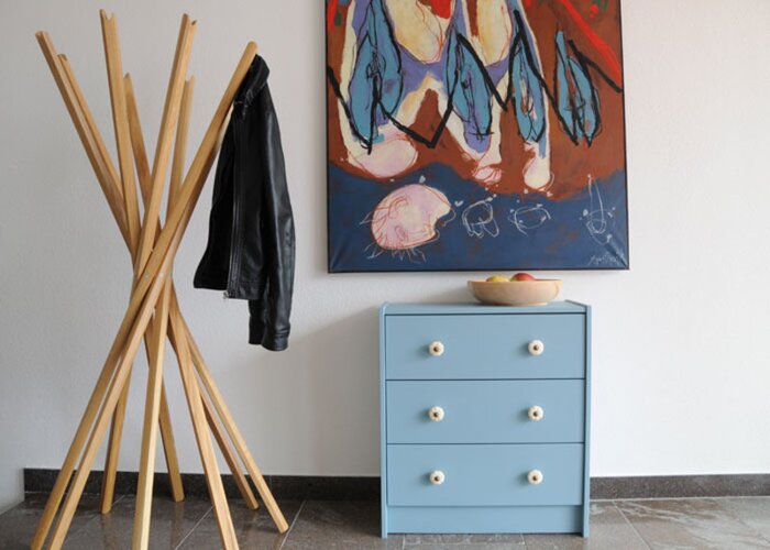 Give your piece of furniture a decorative fine polish and coat the knobs in a different colour. Or: Fix new and artistic knob. That makes your piece furniture unique and distinctive.
