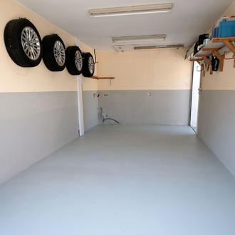 Never pour the primer directly on the floor! This causes spots since the floor absorbs the primer too quickly, which is why you need to work swiftly here. The primer coat must then dry for about two hours. -